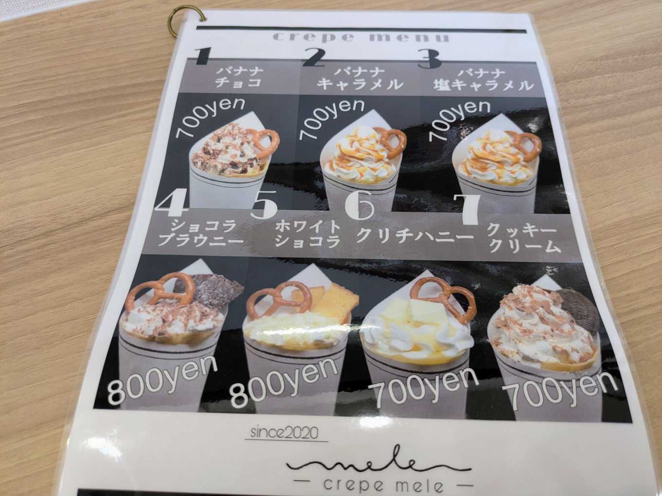 次はクレープ屋さん『crepe mele』。足利市でテイクアウト専門で営業されているお店の2号店になります。