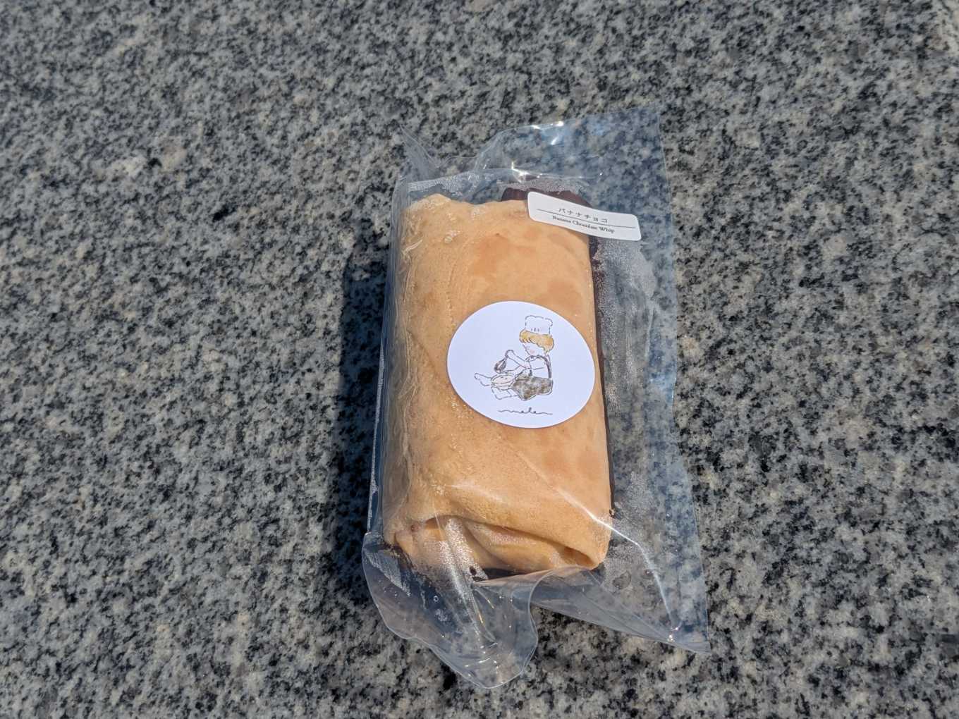 こちらは小さいサイズのクレープ。テイクアウトしやすいですね。カレーをいただいた後でなかいっぱいだったので、小さいサイズがあってよかった!ミニサイズのバナナチョコにしました。
