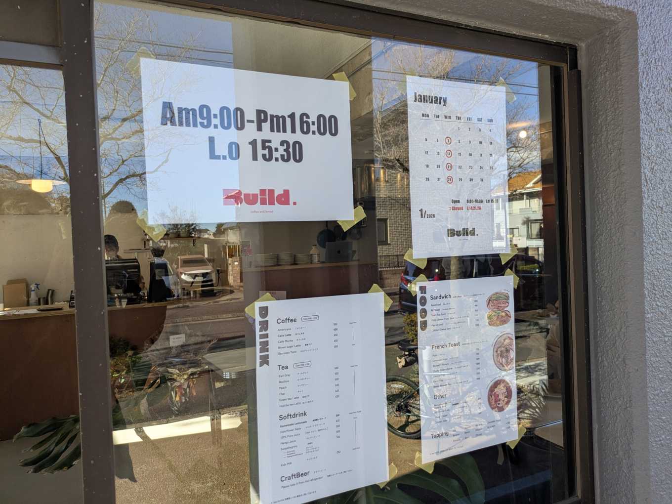 メニューです。サンドイッチ、フレンチトースト、ケーキ、サラダ、コーヒー、紅茶、クラフトビールの販売もあります。