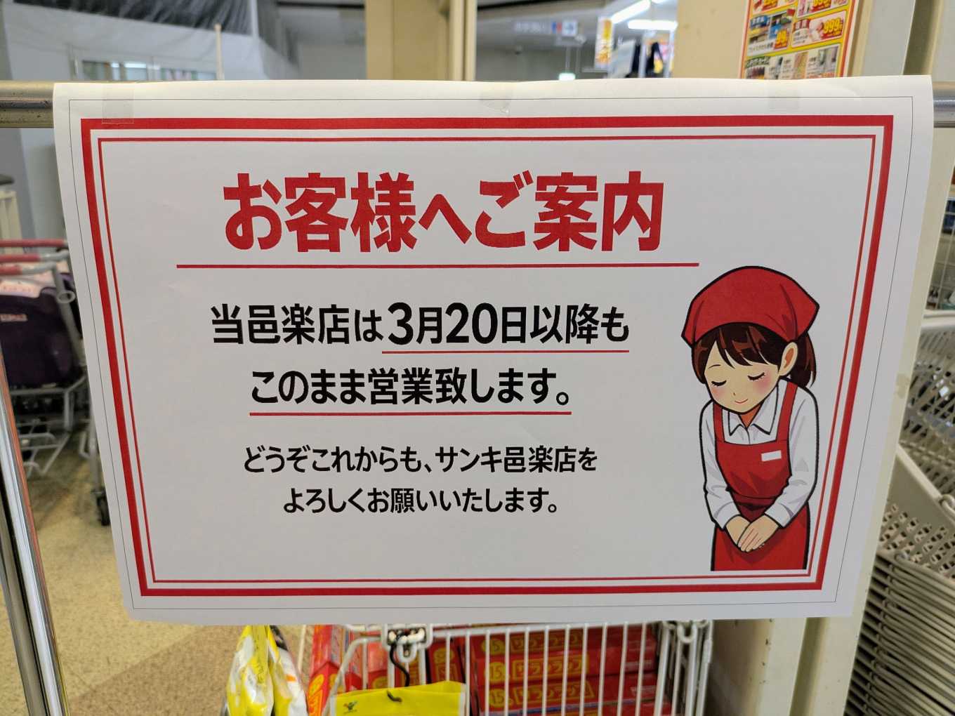 サンキは営業継続