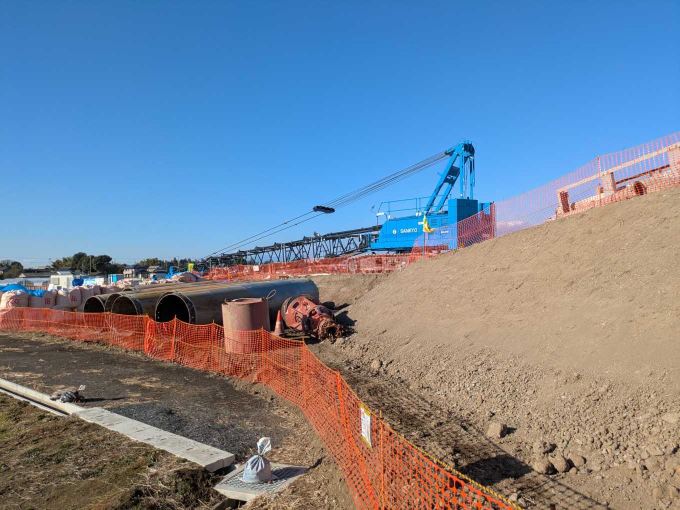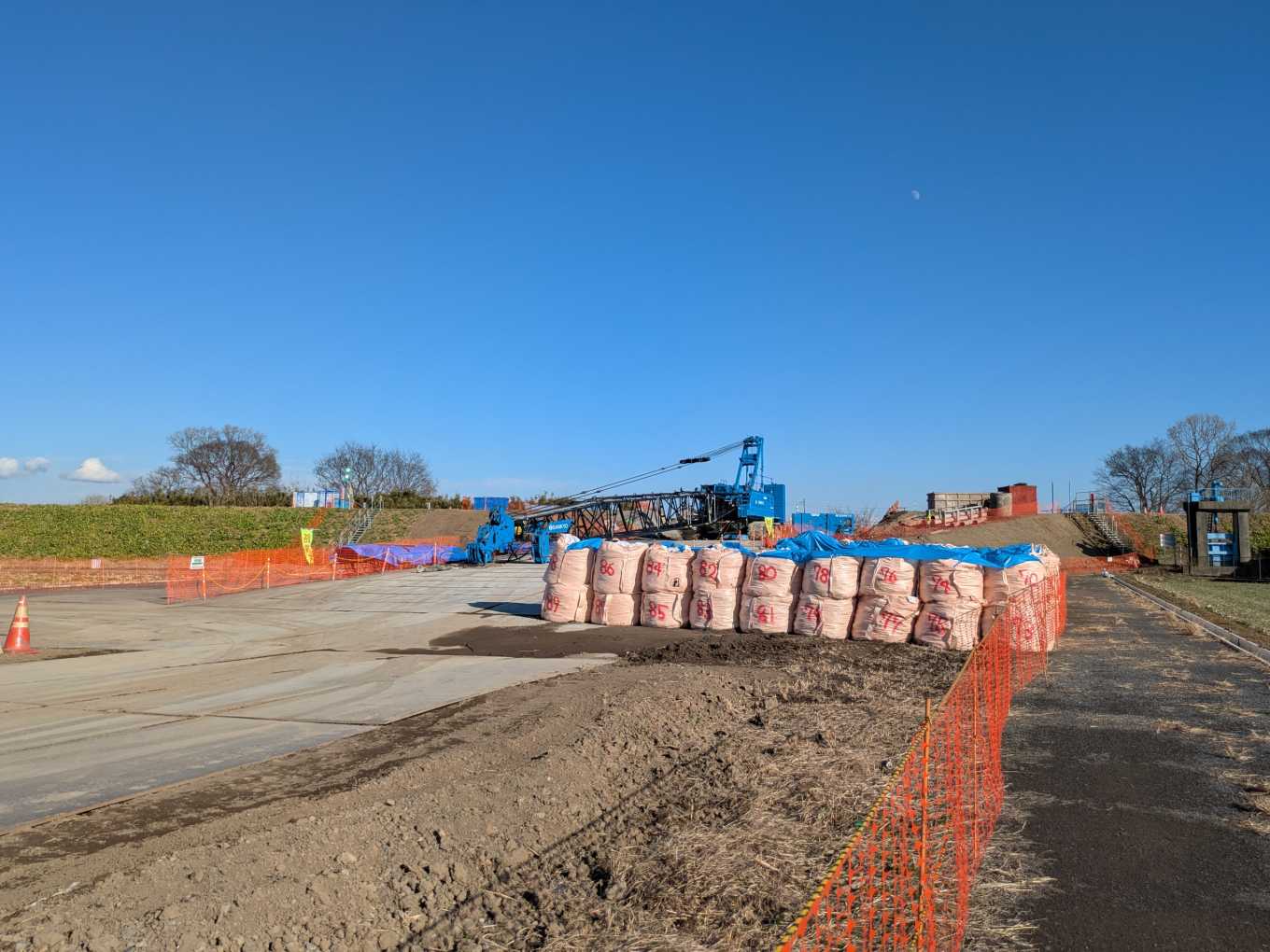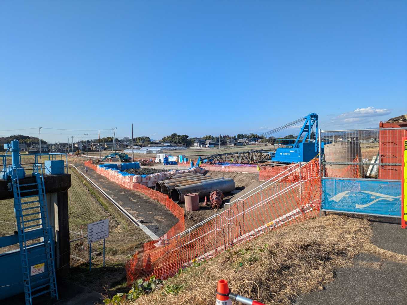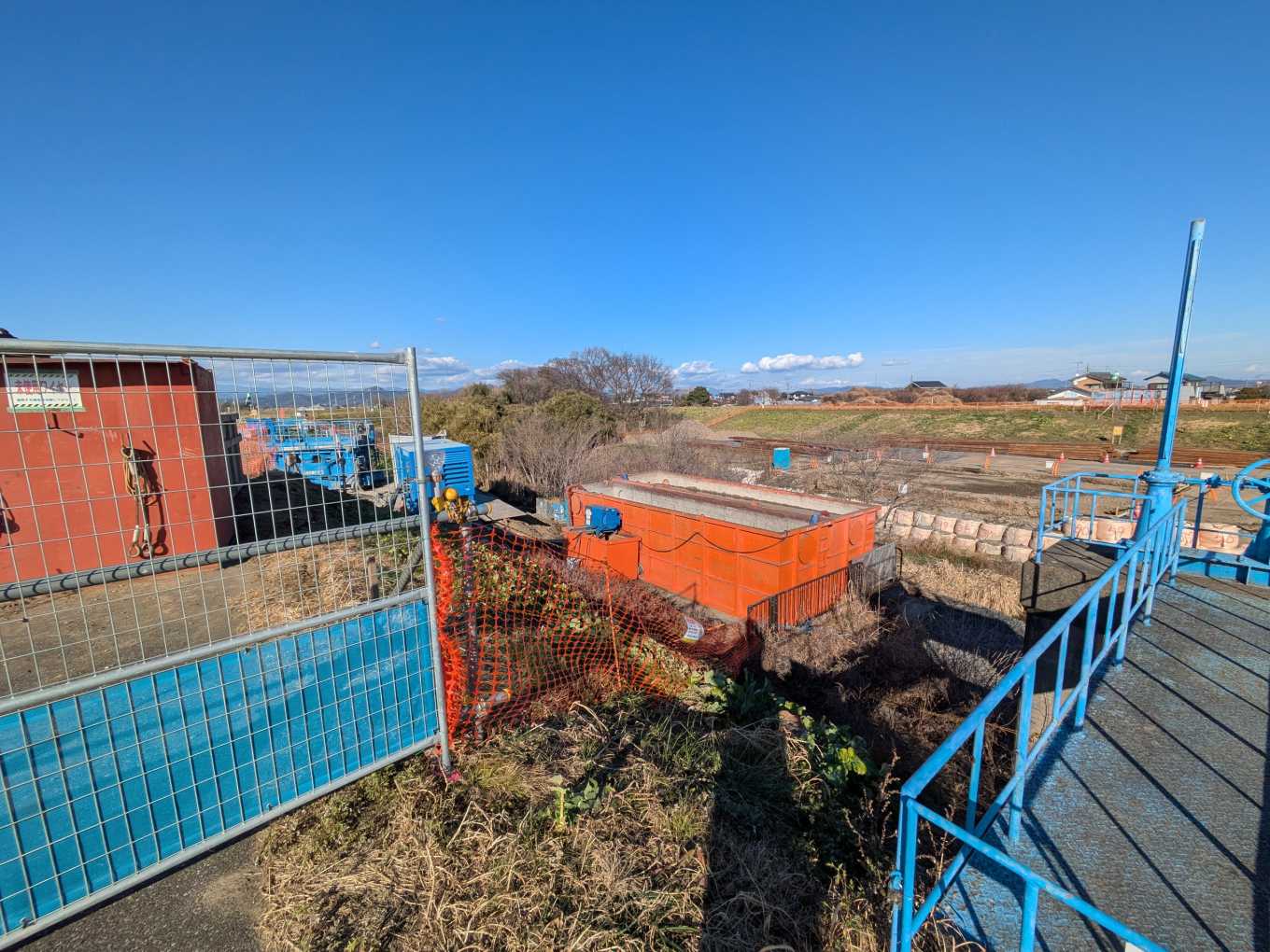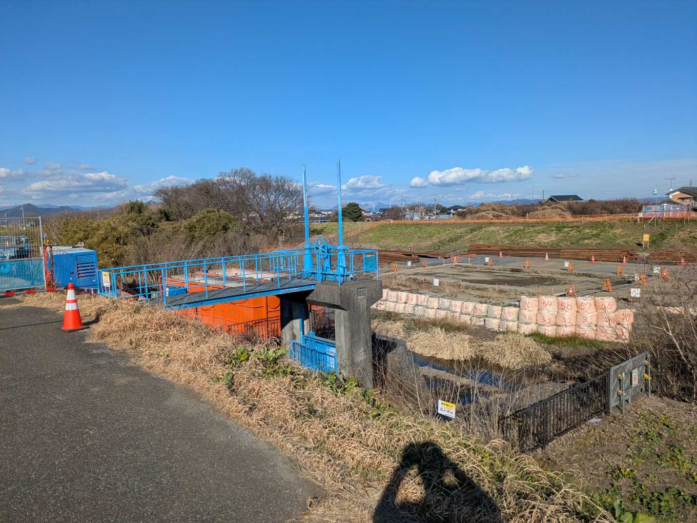 「④」のほうに移動します。森の木排水機場が見えきました。それ以外にもなにやら工事をしているようです。