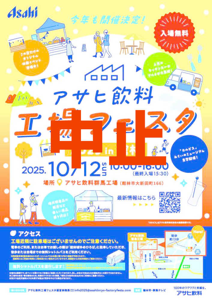 【中止】10月12日(日) アサヒ飲料工場フェスタ 2025 in 館林