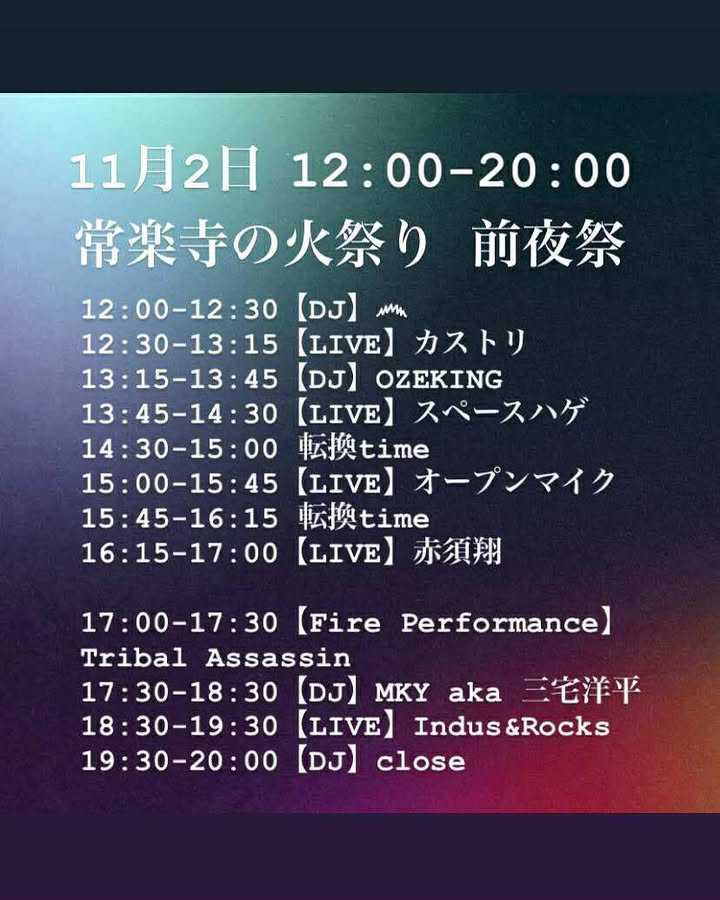 - 2日(日) 12:00-20:00 前夜祭