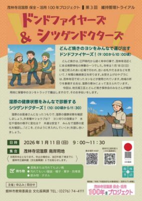 【1/11(日)9:00〜11:30 第3回維持管理トライアル「ドンドファイヤーズ&シツゲンドクターズ」参加者募集!】|館林の里沼(SATO-NUMA)|お知らせ