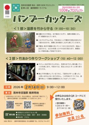 ⇒ 2月14日(日)「バンブーカッターズ」 茂林寺沼湿原保全・活用100年プロジェクト 第4回 維持管理トライアル
