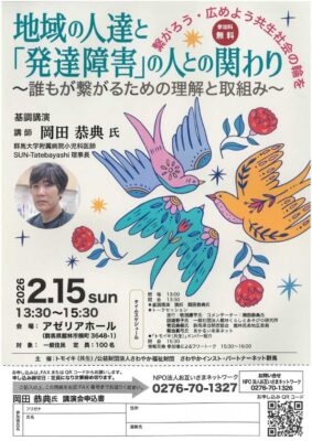 地域の人達と「発達障害」の人との関わり ~誰もが繋がるための理解と取組み~ 講演会を開催します