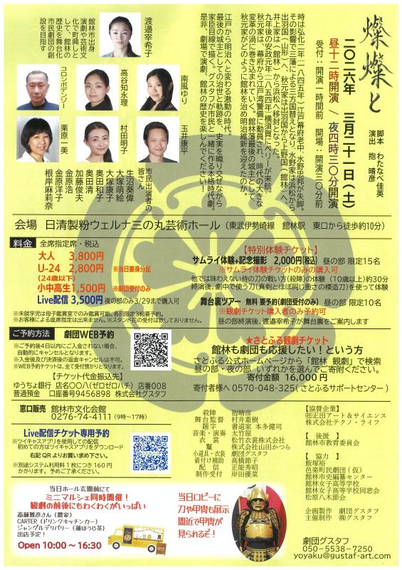 本格時代劇「燦燦と」館林藩最後の城主秋元家|館林市文化会館/三の丸芸術ホール