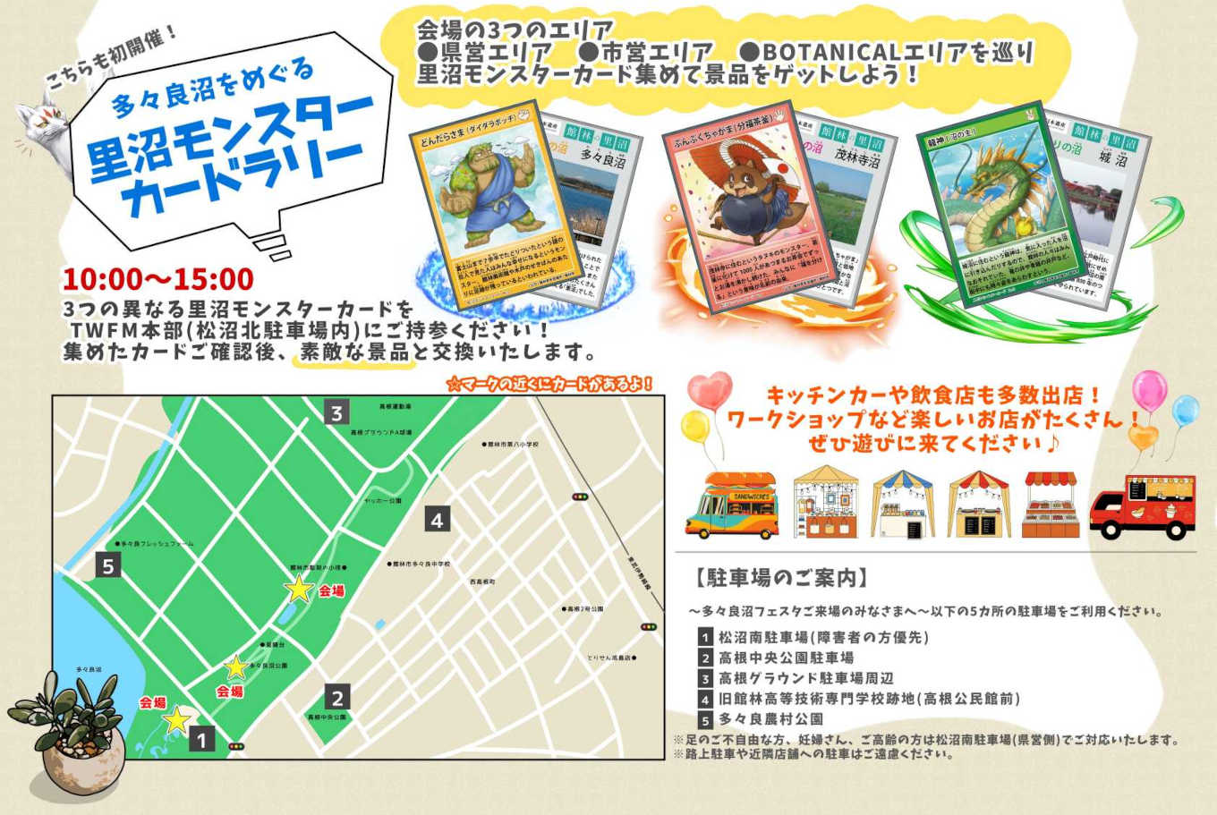 音楽の生演奏・楽しいワークショップ・キッチンカー・野菜販売・日本遺産里沼カードラリーも開催!カードを集めてすてきな景品をゲットしよう!