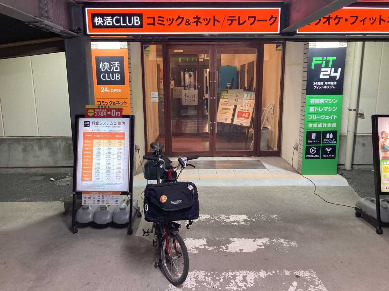 上の写真は2023年に東北を自転車旅した時に利用したときのものですが、この時は、深夜に到着、翌朝始発列車に乗るために4時すぎに快活CLUBを出たところで撮影したものです。滞在時間は5~6時間、ホテルに泊まるのはちょっともったいないなんて時にネットカフェがあるとありがたいんですよね。