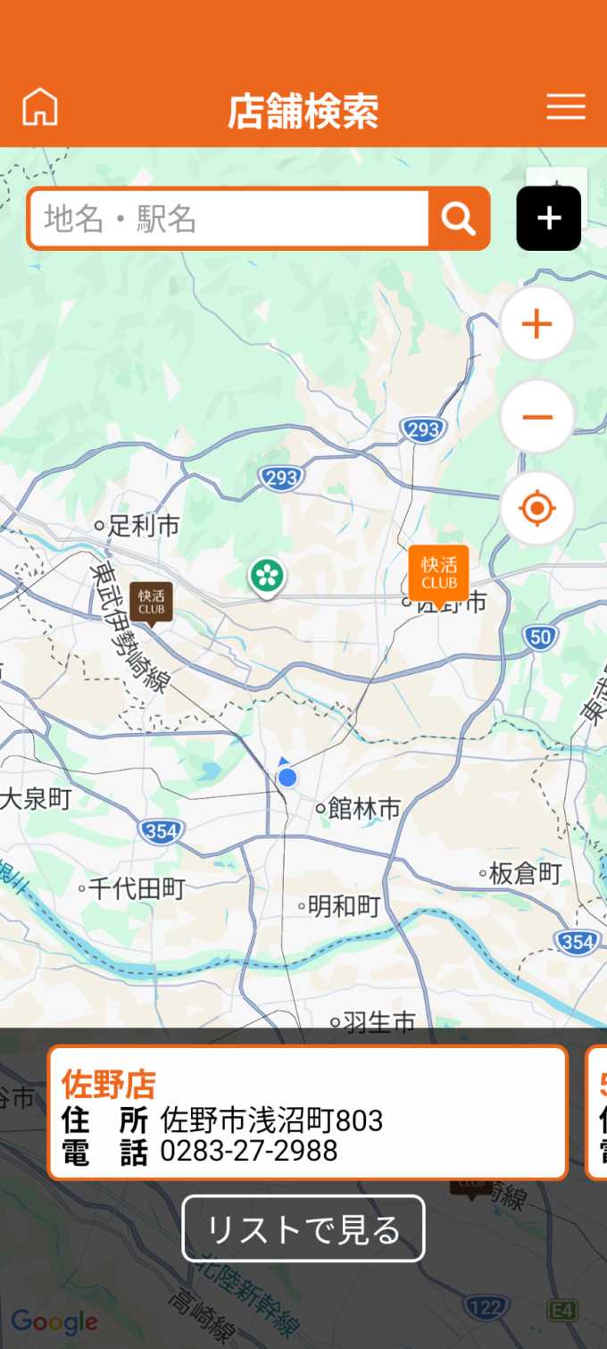 確かに佐野店が出てきます。当然ですが、館林松原店は表示されません。