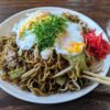 丼をぐるっと回してみると大きなチャーシューの影にフライドオニオンや炒め野菜が見えます。