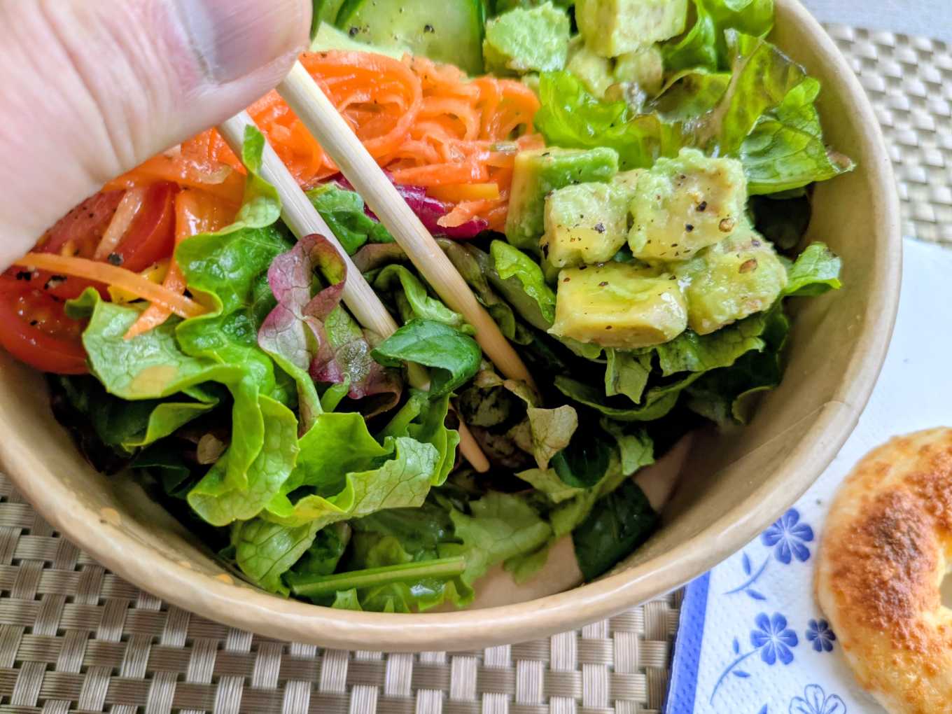 サラダは容器の底まで詰まっていてボリュームたっぷりです。