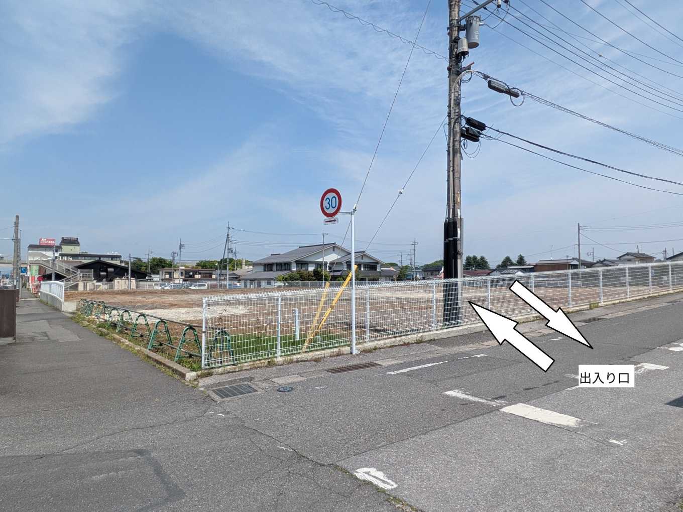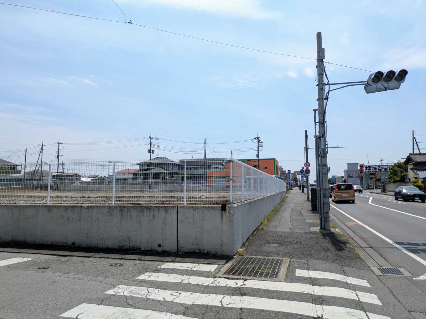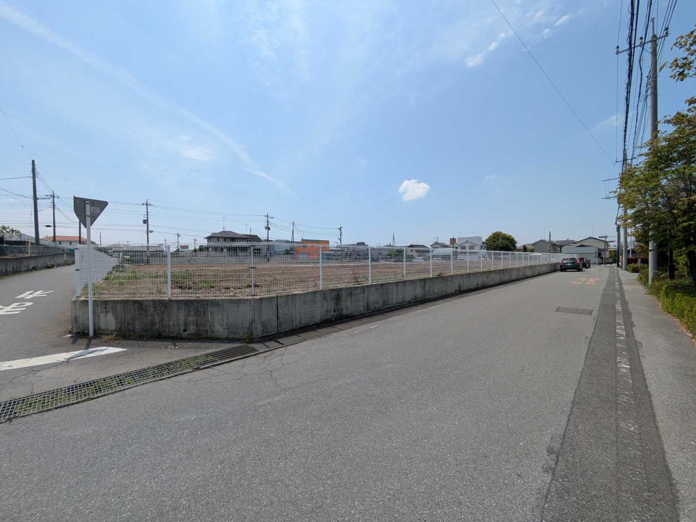 北東角から。後ろは城沼公民館です。右に進むと松原歩道橋交差点です。この交差点が店舗への出入りに利用されることになるでしょう。