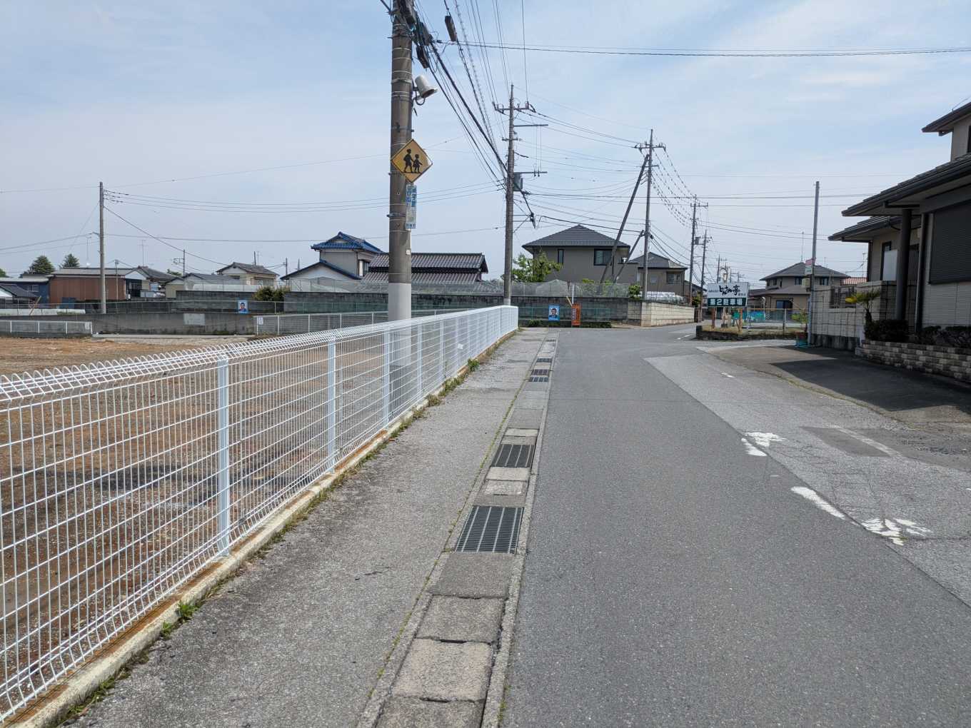 南側の道路。ここは市道ですが、「敷地の自主後退により幅員6.0m確保」するとのこと。