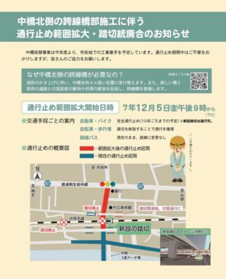渡良瀬川中橋北側の跨線橋部施工に伴う通行止め範囲拡大・踏切統廃合