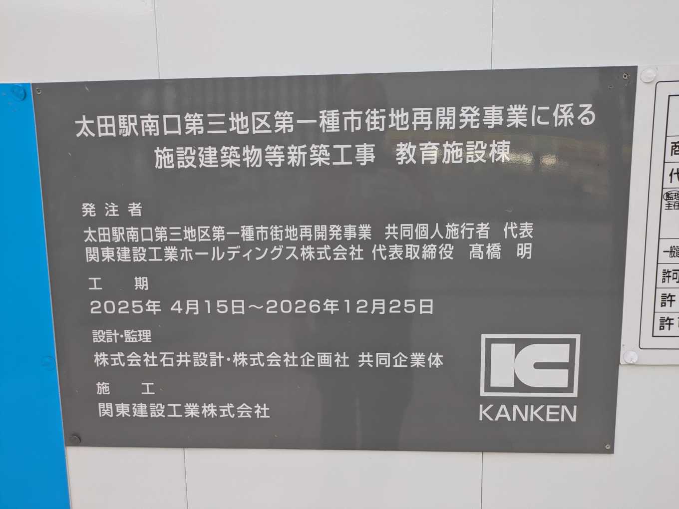 教育施設棟の工期は12月25日まで。店舗棟より半年ほど長いです。