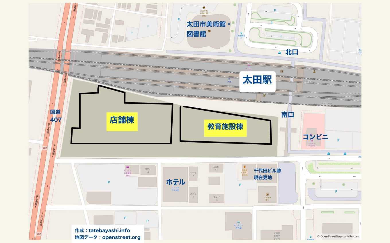 大規模小売店舗のプロジェクト名は「太田駅南口計画」、所在地は「太田市飯田町1548」。