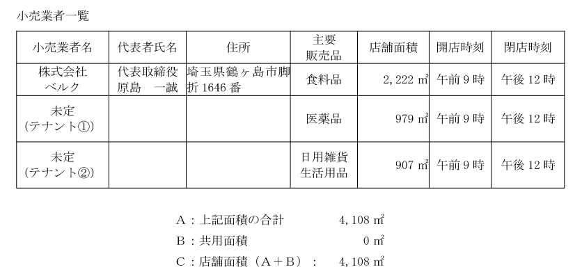 そして、「大規模小売店舗において小売業を行う者」に「ベルク 外2者」との記載があります。