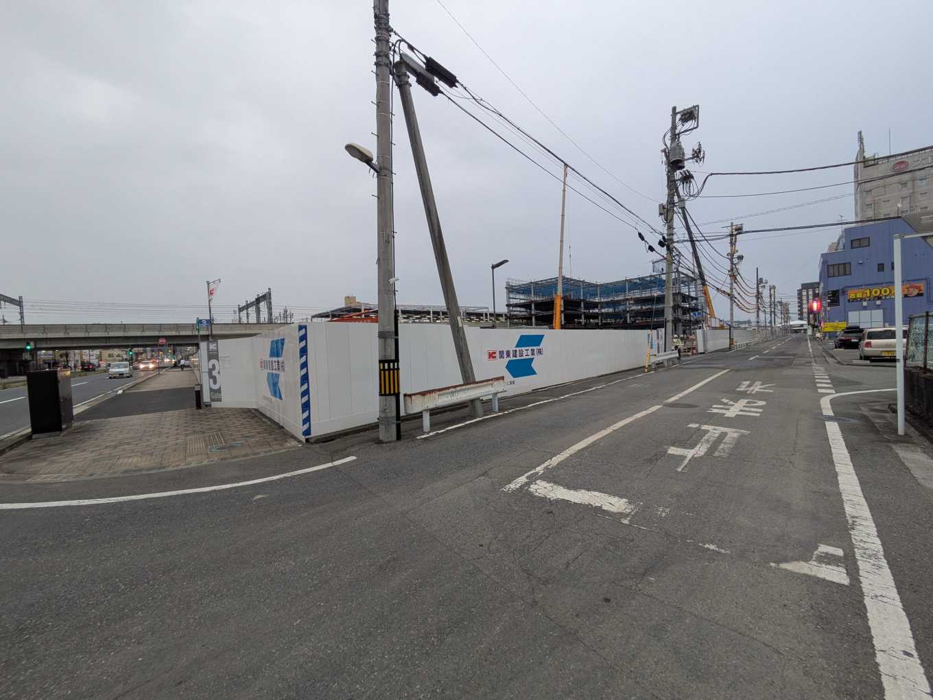 道路右側が、ドン・キホーテがあったところ、左手も工事していますが、それについてはのちほど。