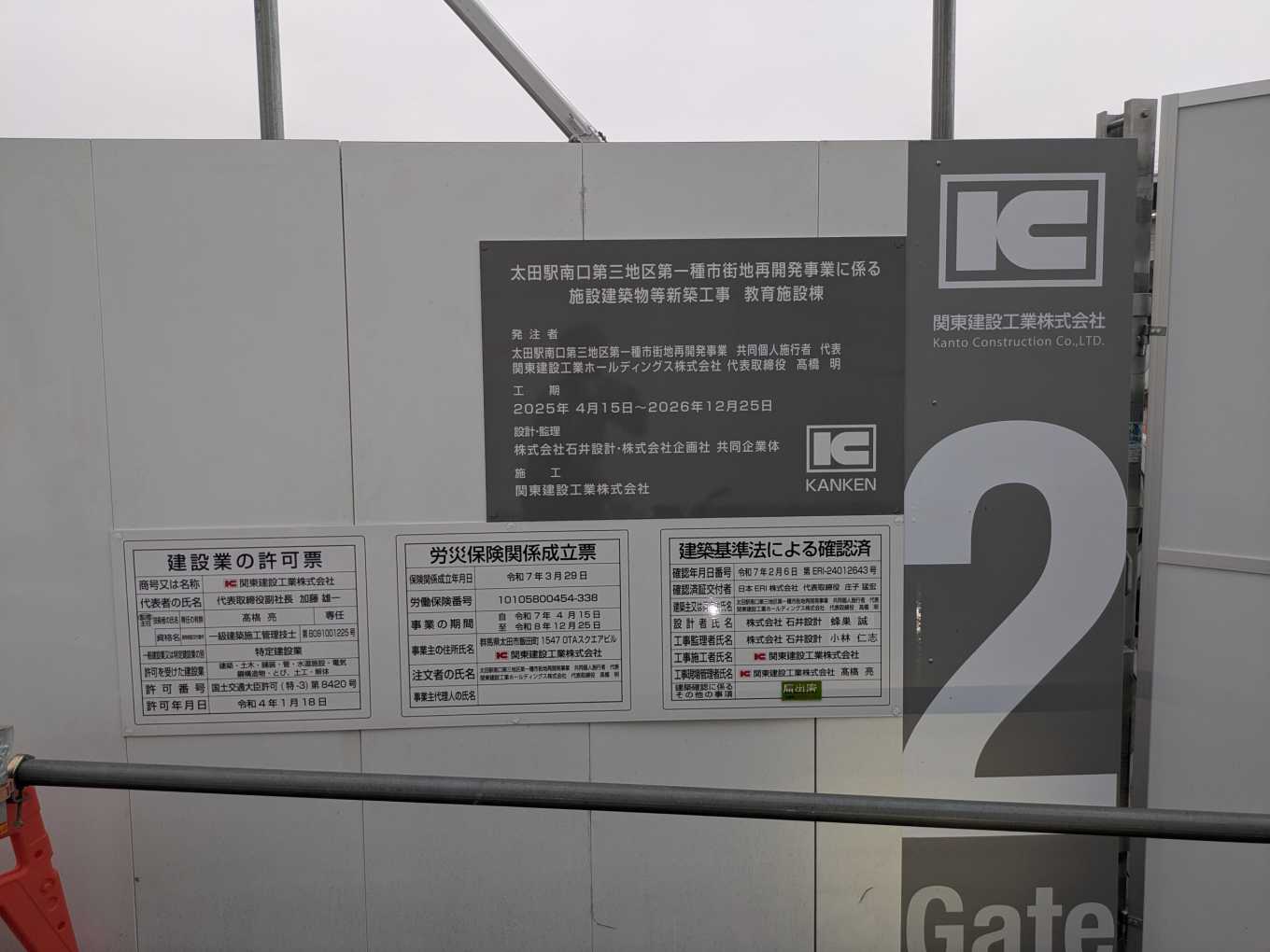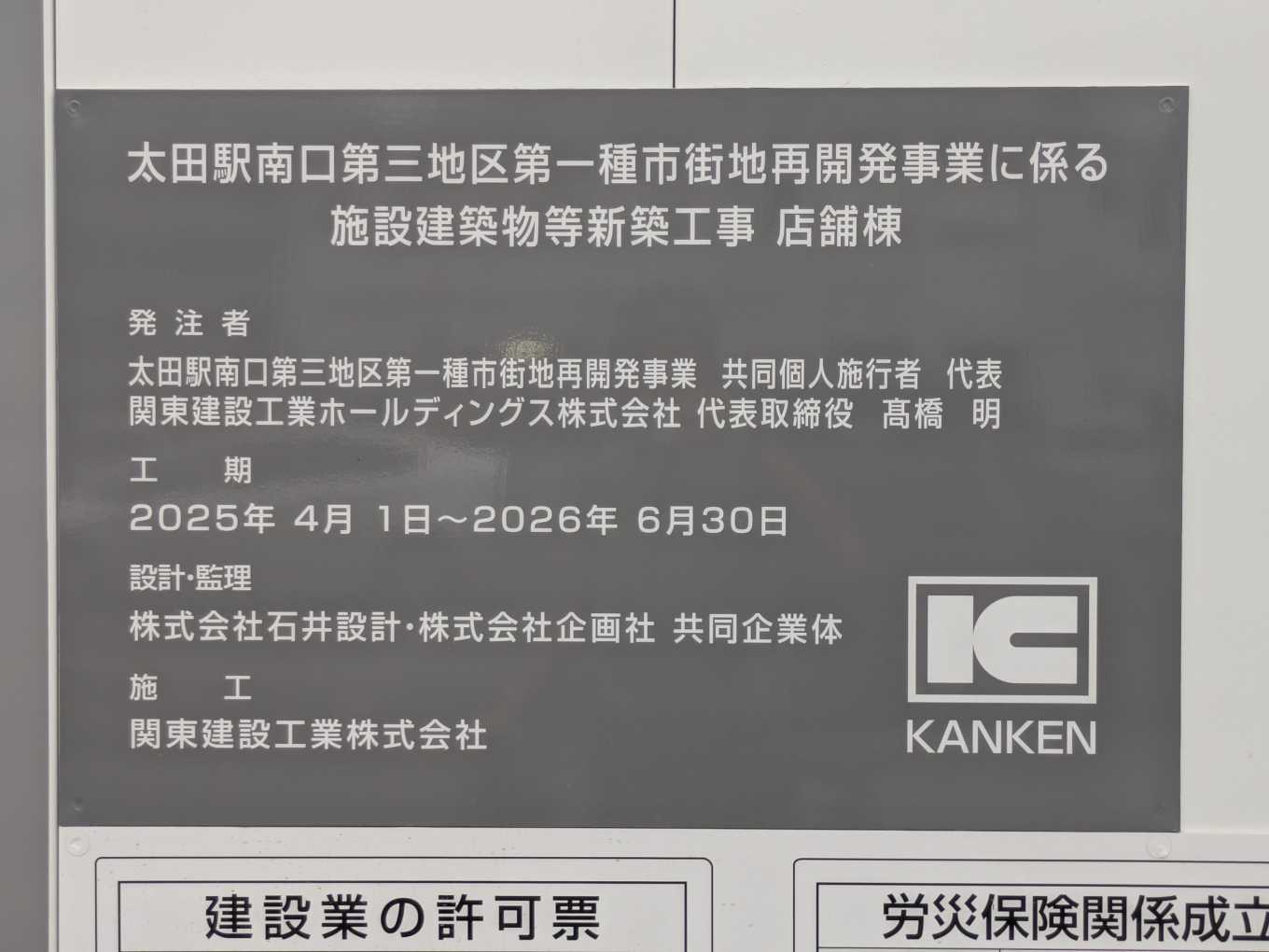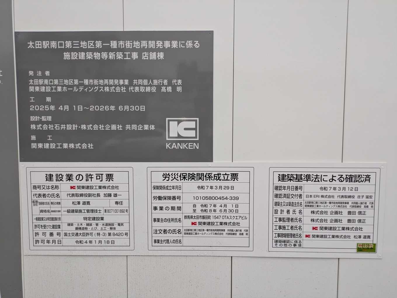 「太田駅南口第三地区第一種市街地再開発事業に係る施設建築物等新築工事 店舗棟」と書かれています。