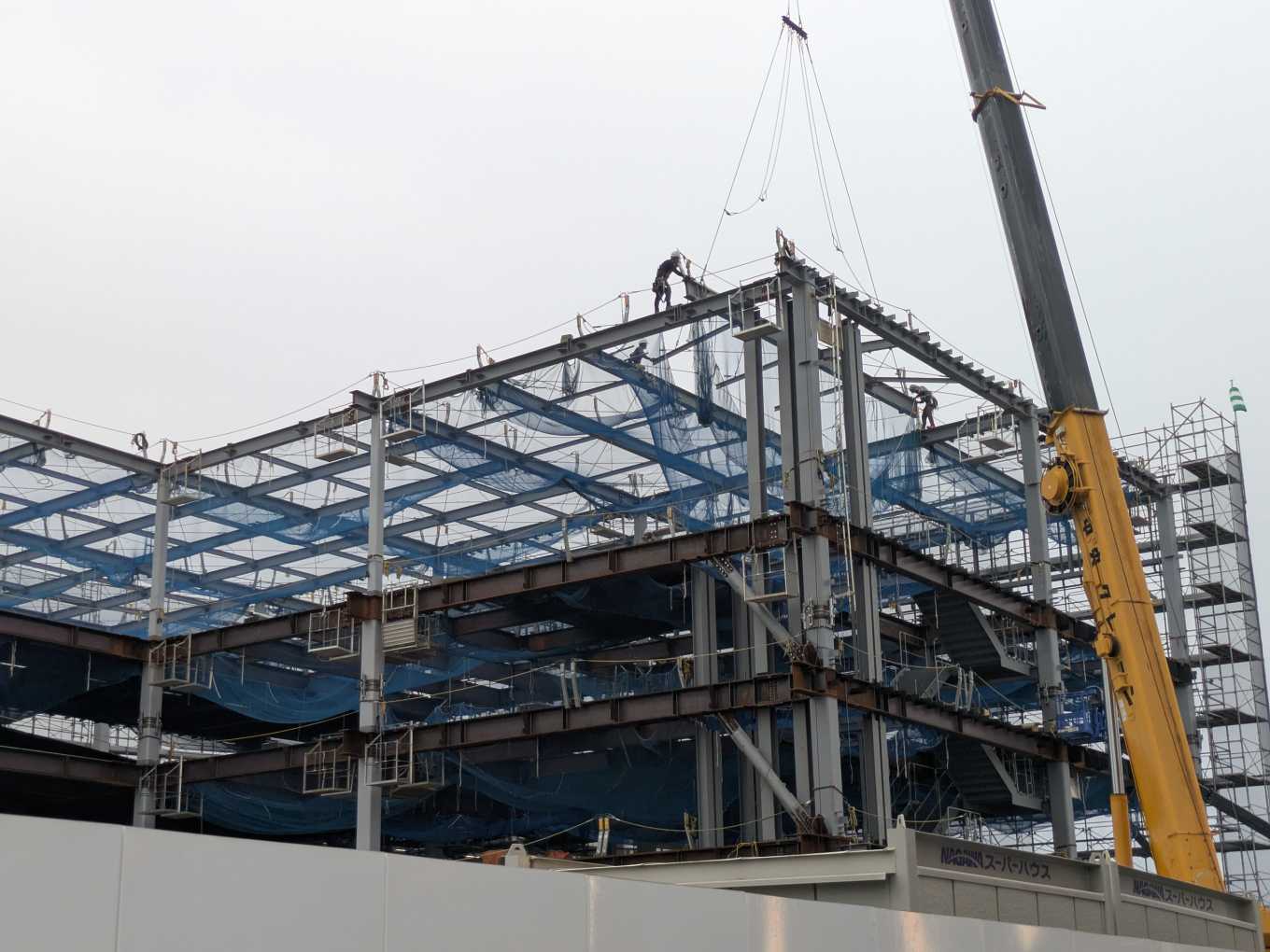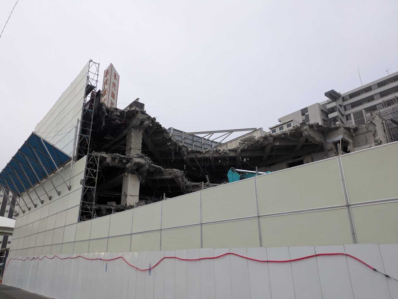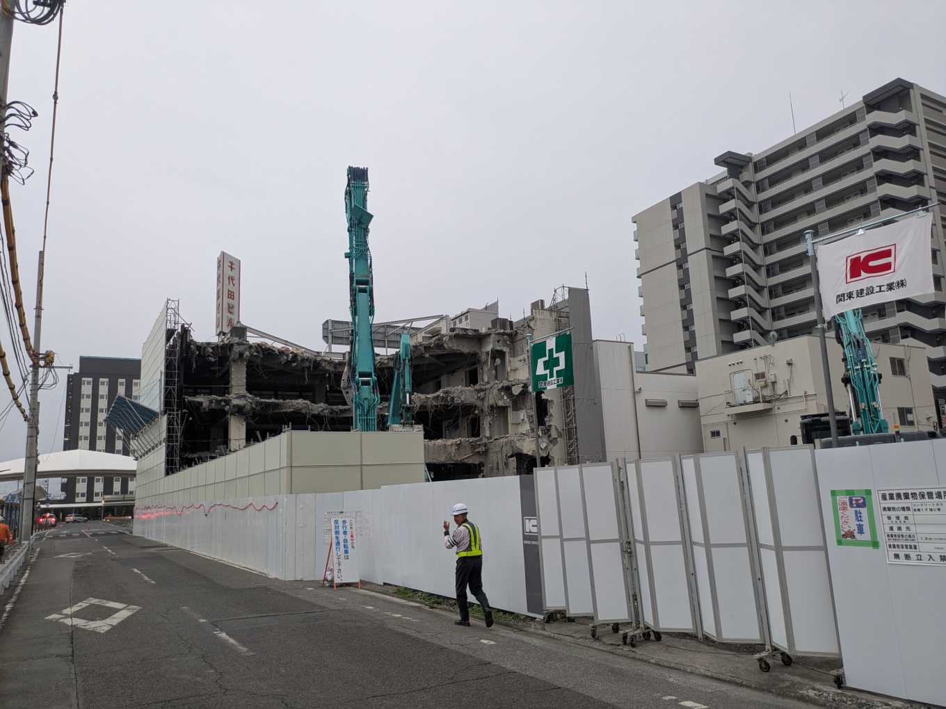 この建物は取り壊し中でした。こちらにも関東建設工業の旗があります。