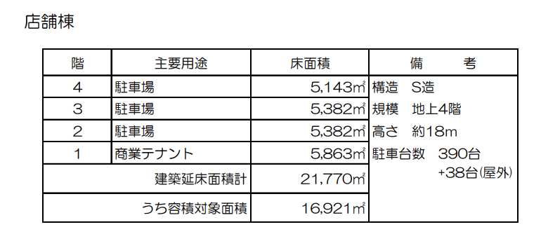 1階に商業テナントが入り、2階から4階は駐車場になります。