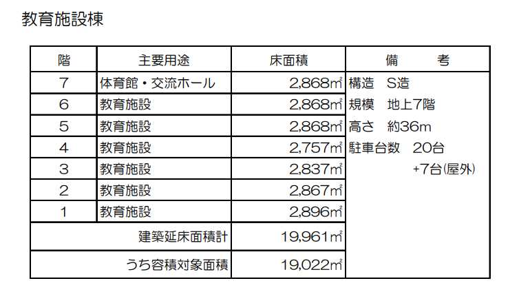 「店舗棟」と「教育施設棟」については、「太田駅南口第三地区第一種市街地再開発事業」に記載がありあました。
