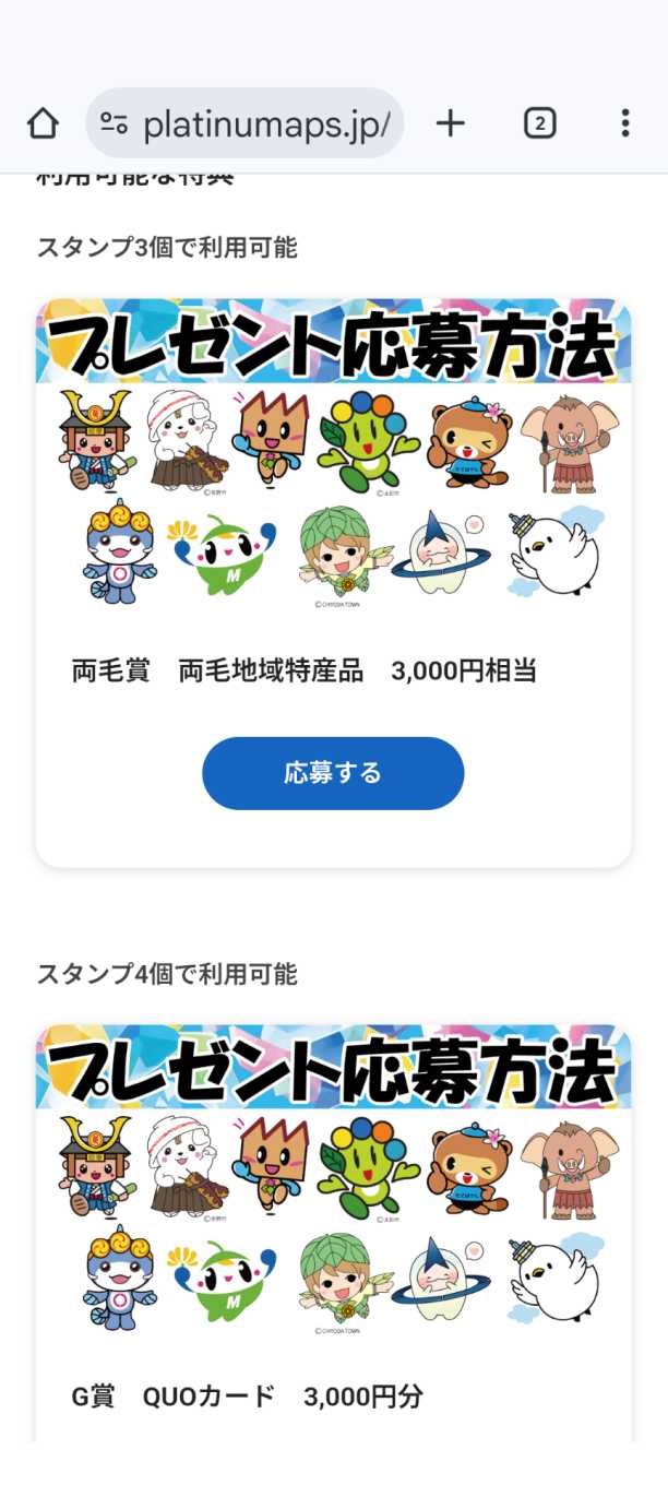 スタンプ3つ集まったので、両毛賞に応募します。タップすると住所など賞品を受け取るのに必要な情報を入力します。以降スタンプが増えるたびに上位の賞に応募できます。どんどん応募しちゃいますよ!