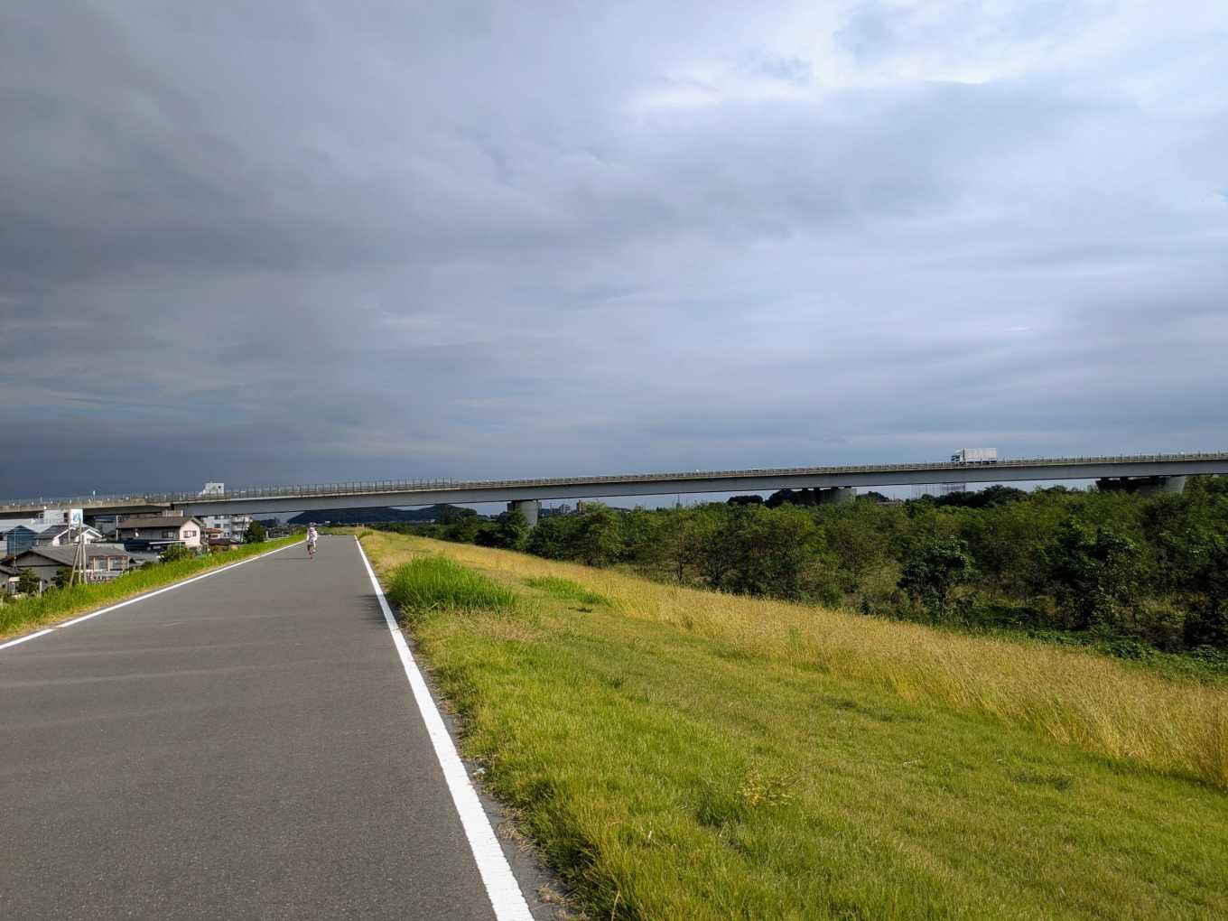 北関東道の下をくぐります。それにしてもあちらの空模様が不穏だな🌧