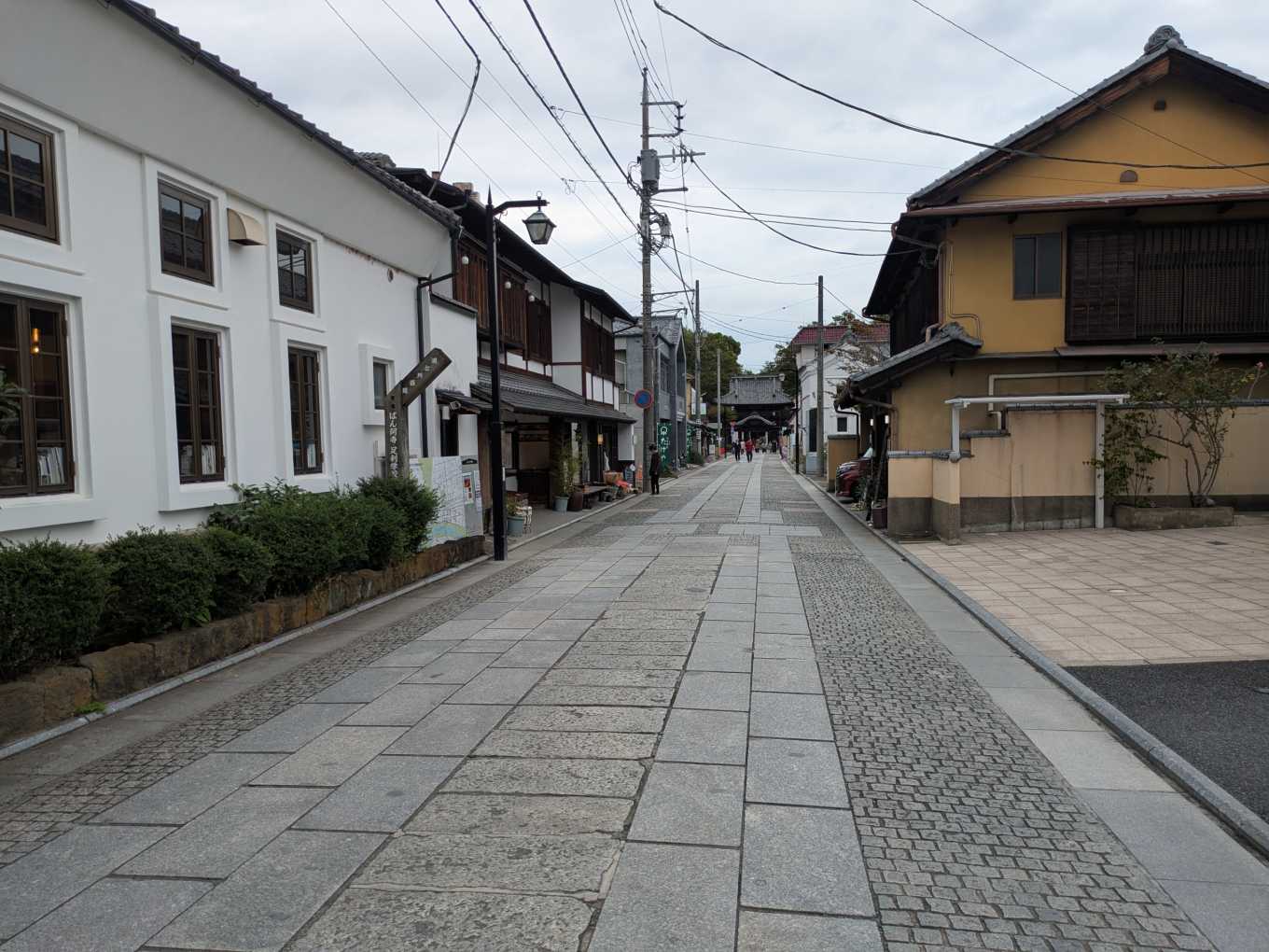まちなかの石畳の通りに着きました。正面は国宝・鑁阿寺