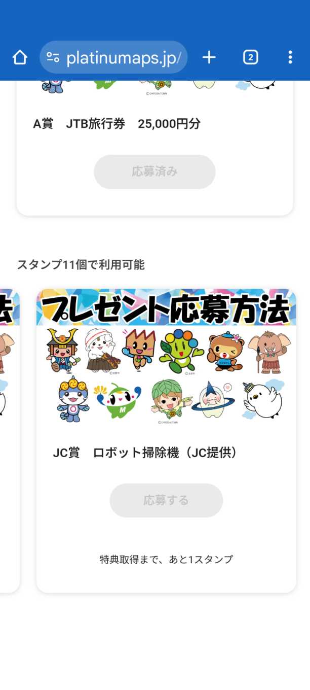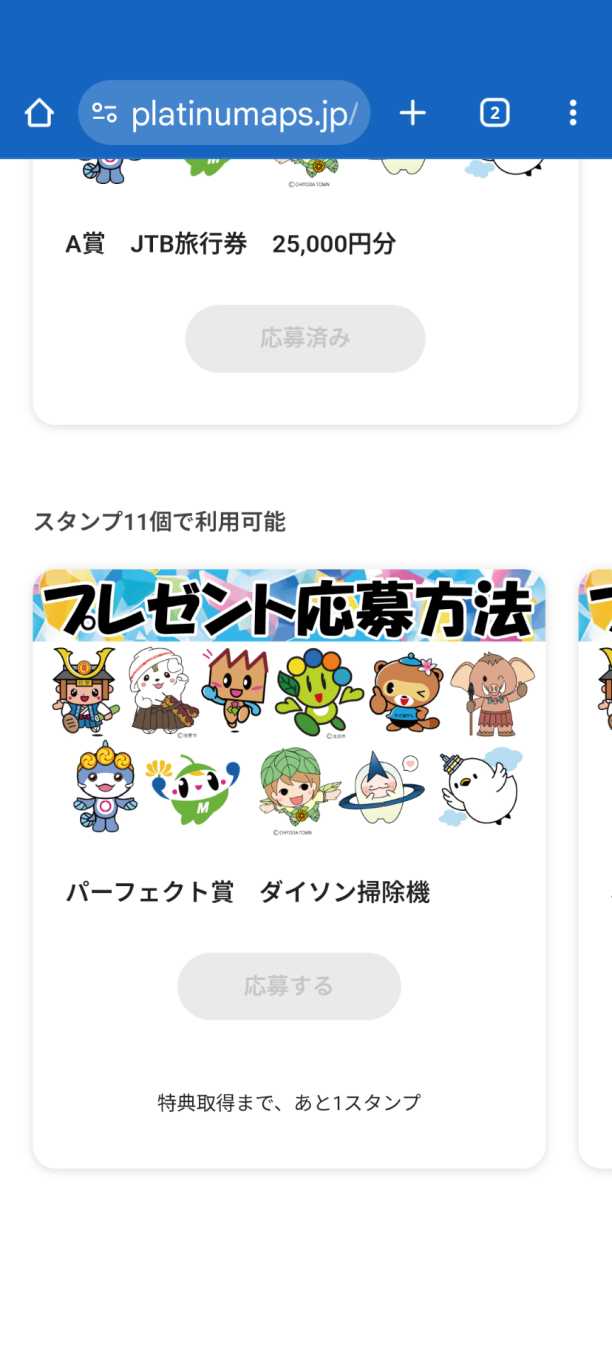 スタンプ11個で応募できるのはパーフェクト賞とJC賞です。