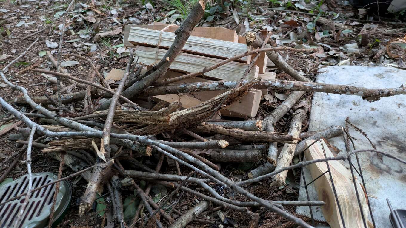 薪は予約のときに、お願いしておきました。700円でした。それと、落ちている木は使っていいということで、それも合わせて薪としました。落ち葉などもあるので、着火剤はなくても困りませんね。