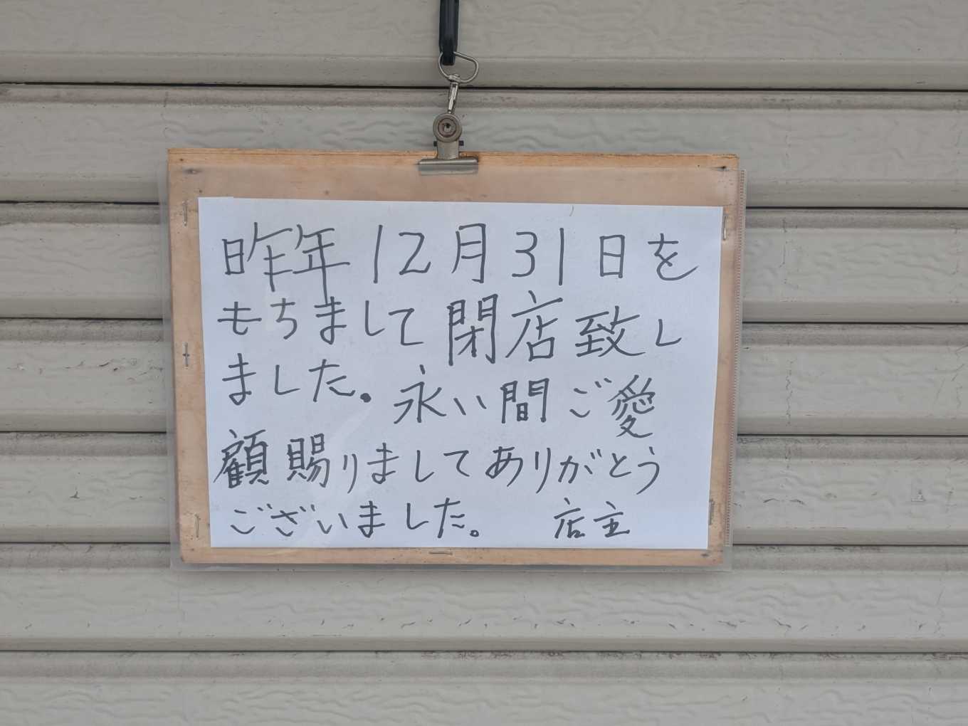 シャッターに閉店のメッセージが掲示されていました。