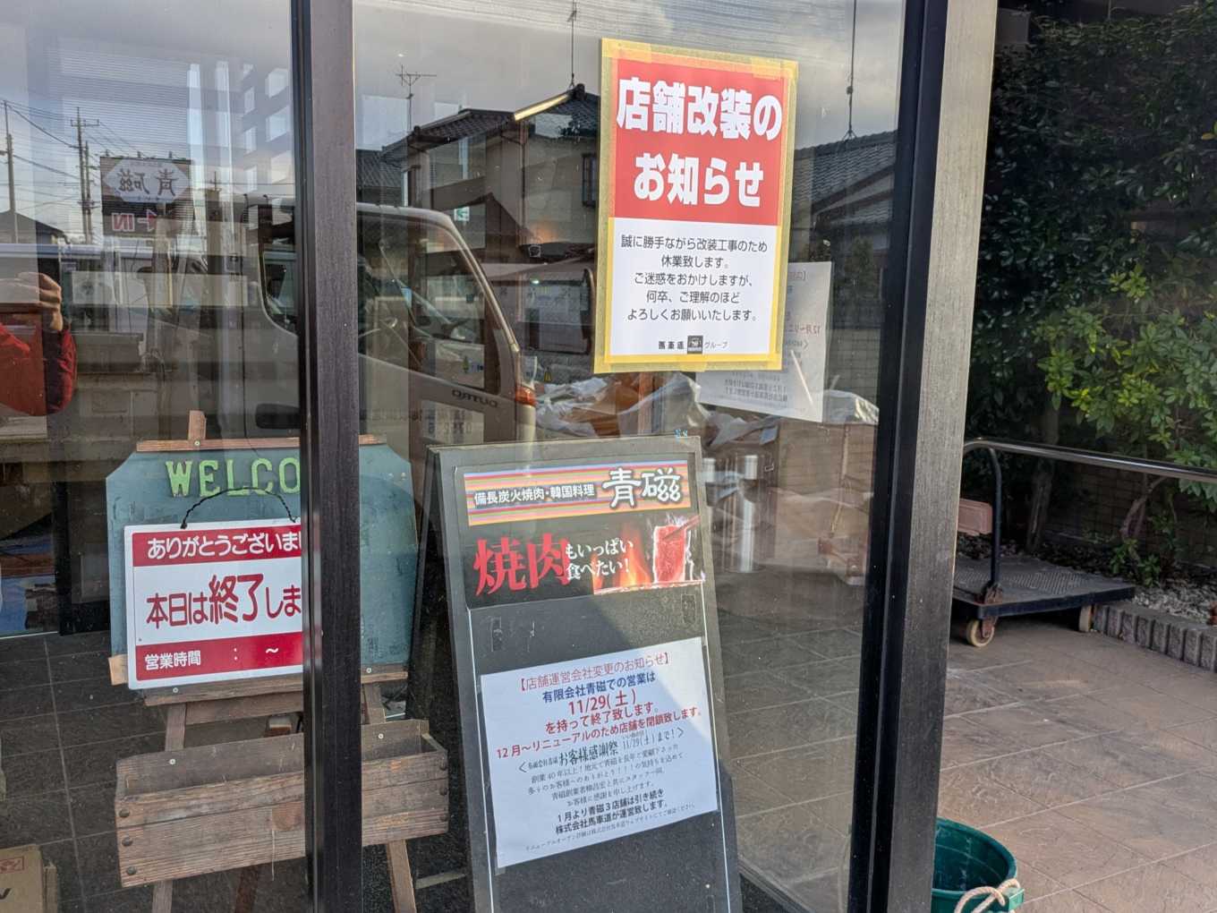 店内は改装工事中。従来の運営会社である「有限会社青磁」での営業は2025年11月29日をもって終了、その後はリニューアルのため休店していることがわかりました。