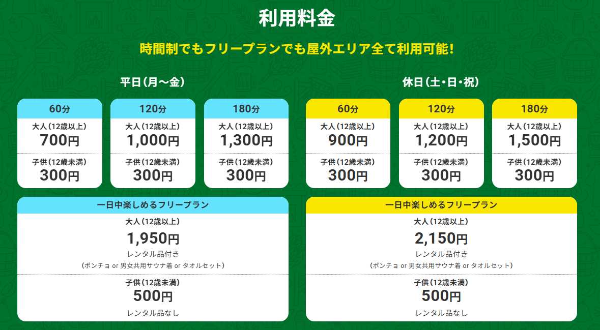 料金が細かく設定されていて、60分、120分、180分、一日中と大きく4つのプランがあります。過ごし方に合わせて選べるのはいいですね。